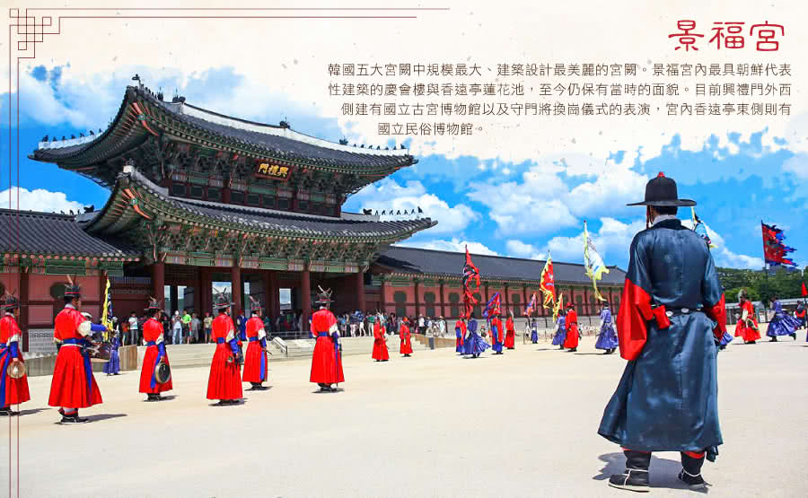 《景福宮注意事項》如此天行程遇週二景福宮公休日,為求行程順暢,將改為前往【昌德宮】朝鮮李朝太宗五年(1406年)作為景福宮之外的離宮建築所修建,被稱為東闕。昌德宮是朝鮮續1395年修建景福宮後,所修建的第二座宮殿,1618年後,朝鮮王朝正宮從慶運宮轉移至昌德宮,之後約250年期間,昌德宮取代原本的正宮景福宮,作為朝鮮王朝的正宮使用。