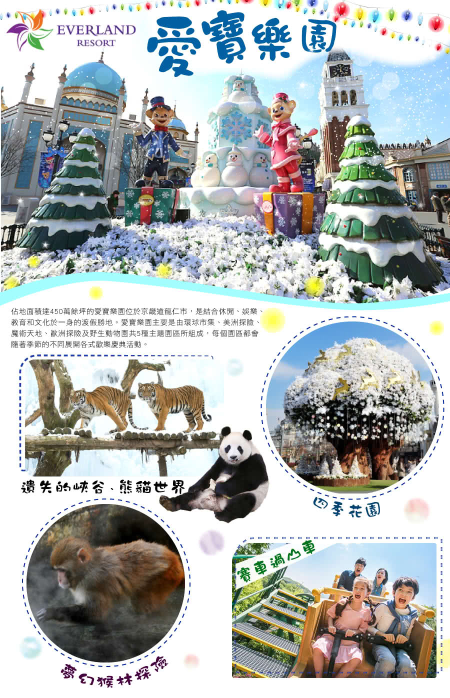 【愛寶樂園(含自由券一票暢玩+四季花園+Monkey Valley夢幻猴林+Lost Valley迷失峽谷體驗水路兩棲鴨子船+野生動物園+熊貓館)】