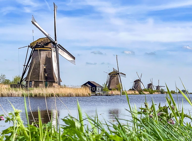 有一種風景,靜靜地豎立在地平線上,遠遠望見,倣佛童話世界一般,那一刻便注定您不能忘記,不能忘記它底襯的國度,這就是風車。擁有19 座風車的小孩堤防,廣闊的視野讓您一眼就能同時看見19座的風車!!數數看,您是不是都看到了呢?大約1740 年開始就佇立在這裡。早期她們勤奮地轉動將風力轉為水車的動力,抽取水並導入Lek河,使得Alblasserwaard 這個低於海平面地區,免於水患之苦。雖然這些工作已經被現代化的科技所取代,但是所遺留壯觀的風車美景,仍然為來此的觀光客完整地保存著。