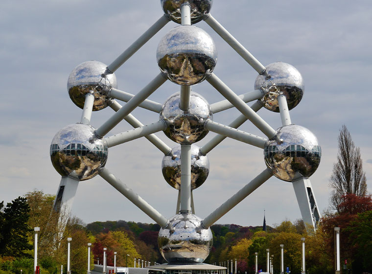 原子球塔是比利時於 1958 年萬國博覽會的地標性建築,其比例是鐵分子的 1650 億倍,9個圓球是是代表 9 粒鐵原子,更象徵早期比利時的 9 個省分。