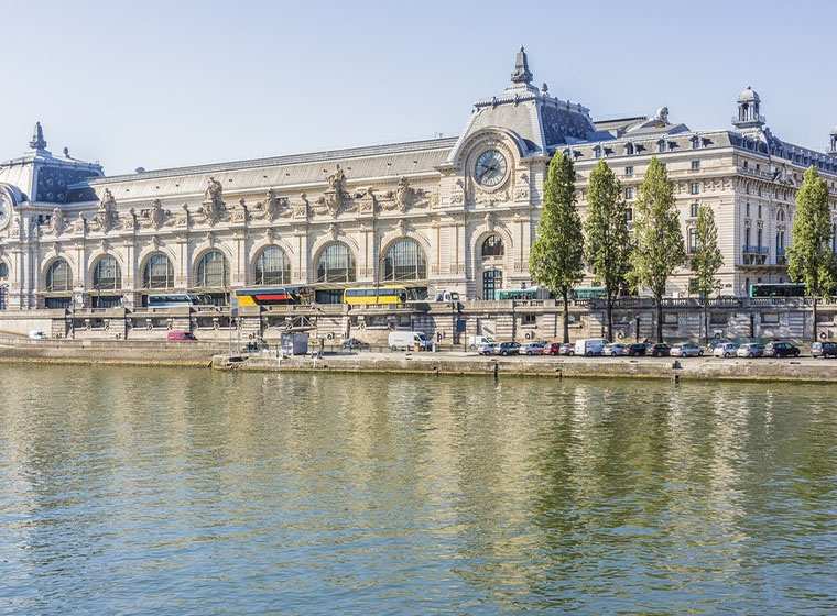 奧塞美術館的建築為建築師Victor Laloux為1900年舉辦的萬國博覽會設計的火車站,位在塞納河畔,1900~1939年間都是人來人往的奧塞火車站,火車站功成身退後,經過漫長的歲月,於1978年被列入保護的歷史建築,1986年12月1日,改建為奧塞美術館對外開放,外觀上還保留了從前火車站的樣貌,挑高中庭加上宏偉的拱頂設計光線柔和的進入美術館中,整個空間氣派又不失細膩質感,老車站的華麗大鐘也是這裡的必看重點之一。奧塞美術館成立於1986年12月,美術館定位於羅浮宮和法國現代藝術美術館─龐畢度中心之間主要收藏1848年至1914年間創作的西方藝術作品,以印象派的畫作為主的樓層有馬奈、竇加、莫內、梵谷、米勒的拾穗等作品皆收藏在此。